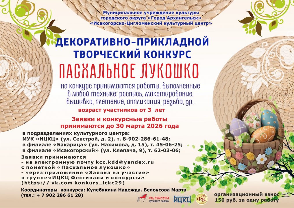 Мы рады сообщить о начале замечательного декоративно-прикладного творческого конкурса «Пасхальное лукошко», который станет ярким воплощением ваших идей и вдохновения! Этот конкурс — отличная возможность проявить свои таланты и погрузиться в мир традиций Светлого праздника Пасхи.